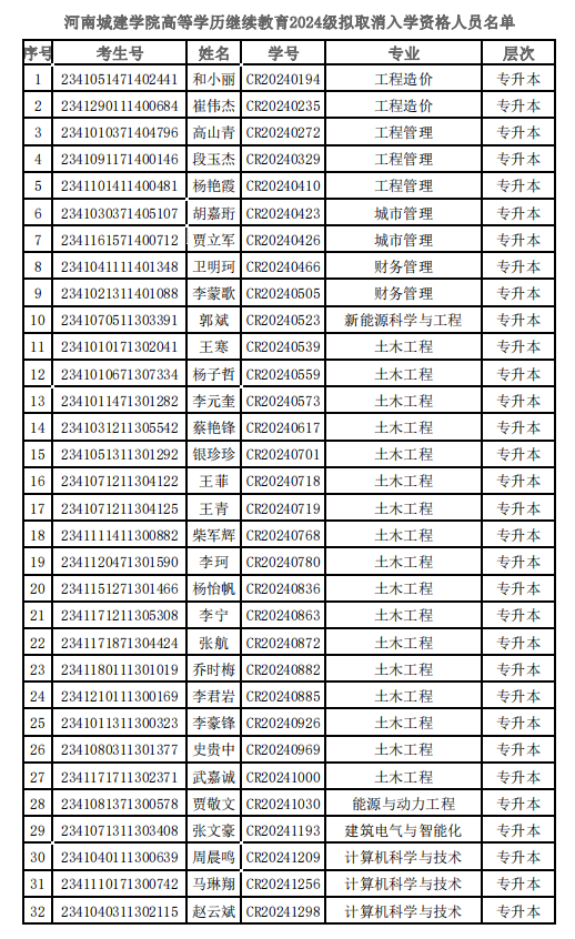 附:tyc122cc太阳成集团高等学历继续教育2024级拟取消入学资格名单