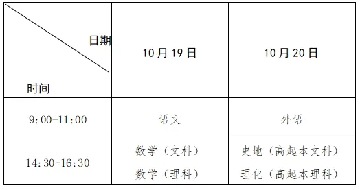 1.高起本、高起专考试时间表