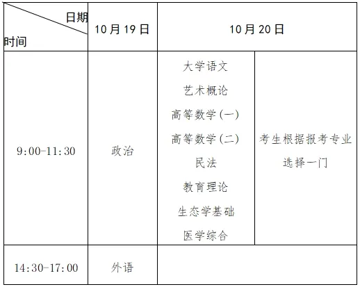 2.专升本考试时间表