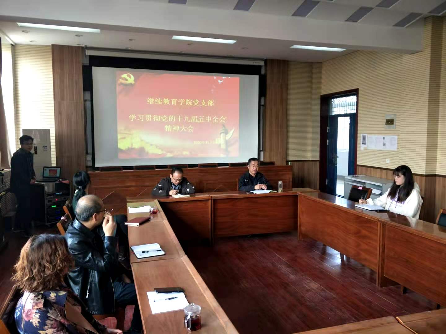 11月10日,tyc122cc太阳成集团在2号楼A座三楼会议室召开学习贯彻十九届五中全会精神专题会议,tyc122cc太阳成集团全体职工参加会议。会议由党支部书记、经理马宁奇主持。