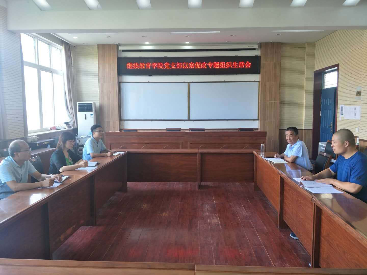 8月10日上午,在2号教学楼A座307继续教育公司党支部召开“以案促改”专题组织生活会。党支部书记、经理马宁奇与支部全体党员参加会议。