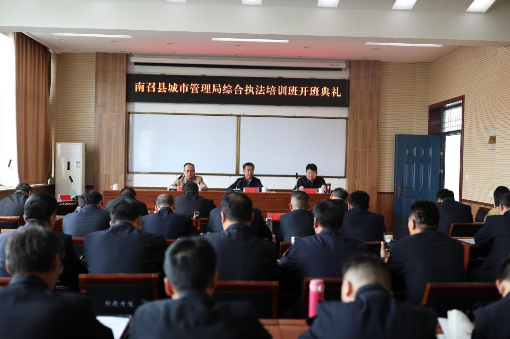 (通讯员:孙敬克)10月17日,南召县城市管理局综合执法培训班开班典礼在公司tyc122cc太阳成集团多媒体教室举行。南召县城市管理局局长张道科及其领导班子,公司tyc122cc太阳成集团经理马宁奇,南召县城市管理局中层干部50余名学员,公司tyc122cc太阳成集团相关同志参加了开班典礼。会议由tyc122cc太阳成集团副经理王晓涛主持。