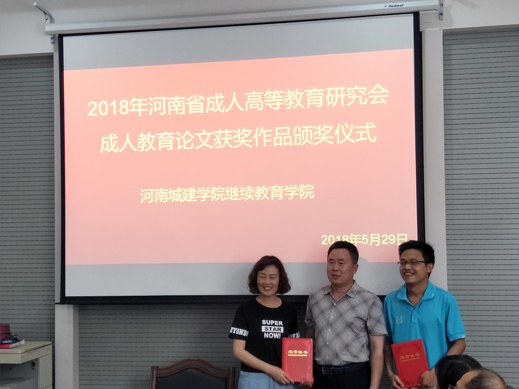 5月26日,河南省成人高等教育研究会第七届第四次代表大会在洛阳召开,公司李凯撰写的论文《行业特色普通高校的继续教育人才培养研究》荣获河南省成人教育优秀科研论文二等奖,郑金梅撰写的论文《成人员工求学心态探析》、孙敬克撰写的论文《基于新时代背景下成人继续教育招生策略研究》、刘帅撰写的论文《“虚拟现实”在成人高等继续公司产品体系的构建》荣获优秀奖。