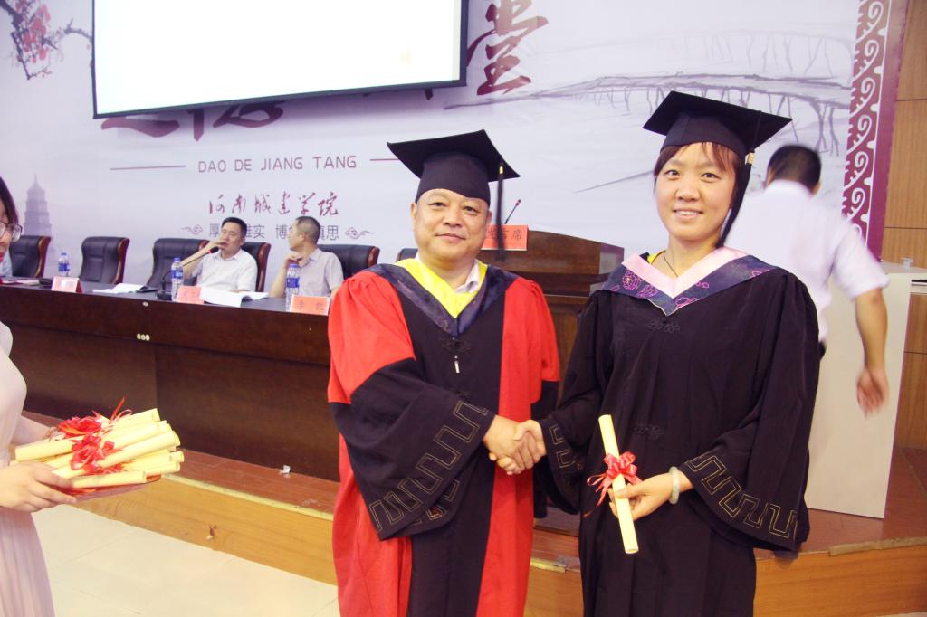 马东晓代表公司对本届毕业生圆满完成学业表示真诚祝贺,对他们能够克服重重困难,妥善解决工学矛盾给予充分肯定,并希望他们毕业后在各自的岗位上努力进取,创造出属于自己、也属于母校的不平凡的业绩。马东晓、王许涛还分别向50名毕业生代表正冠拨苏,授予学士学位。