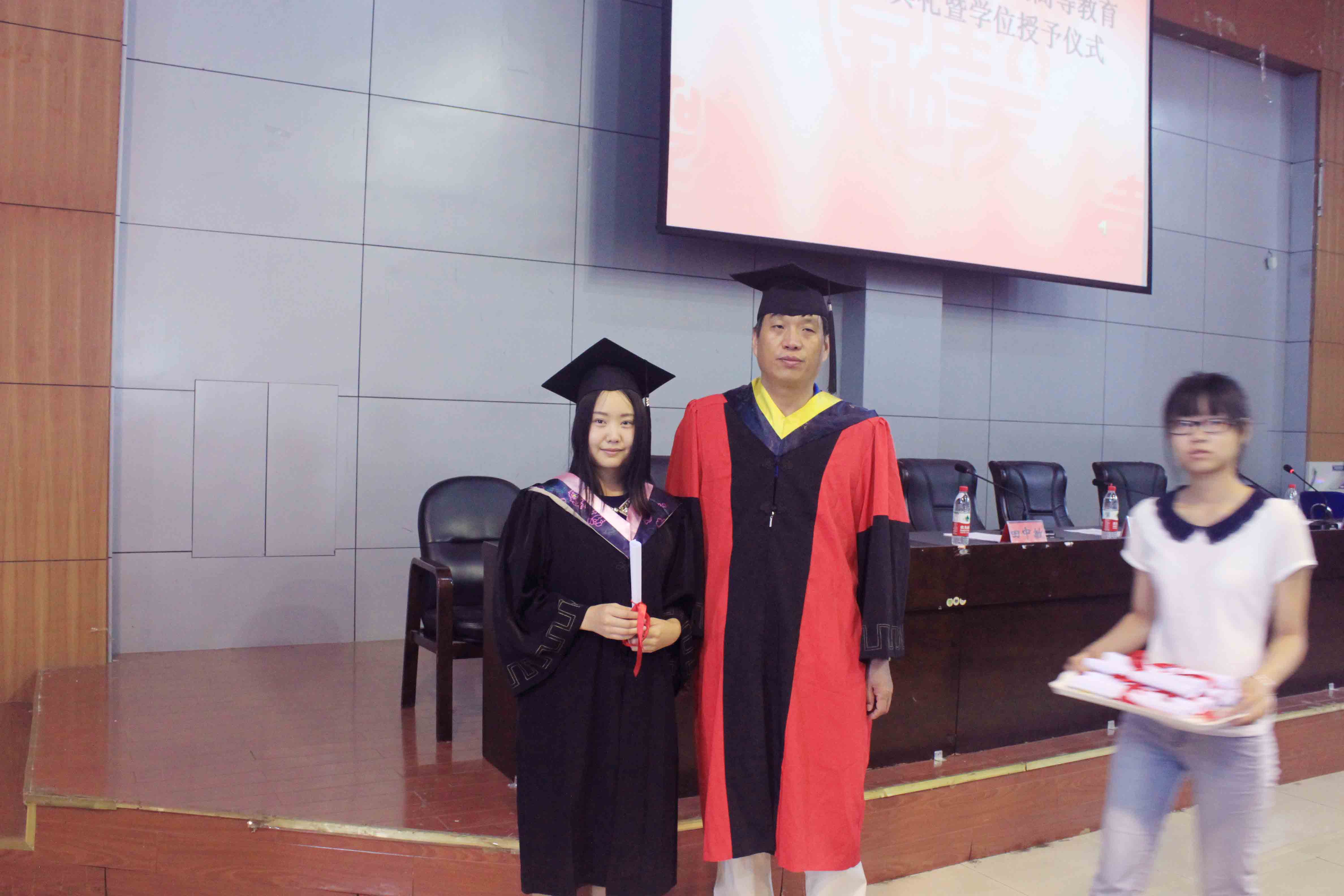 陈丙义代表公司对本届毕业生圆满完成学业表示真诚祝贺,对他们能够克服重重困难,妥善解决工学矛盾给予充分肯定,并希望他们毕业后能珍惜荣誉、严以修身、在学习工作中取得新的成绩。陈丙义、靳晓奇还分别向50名毕业生代表正冠拨苏,授予学士学位。