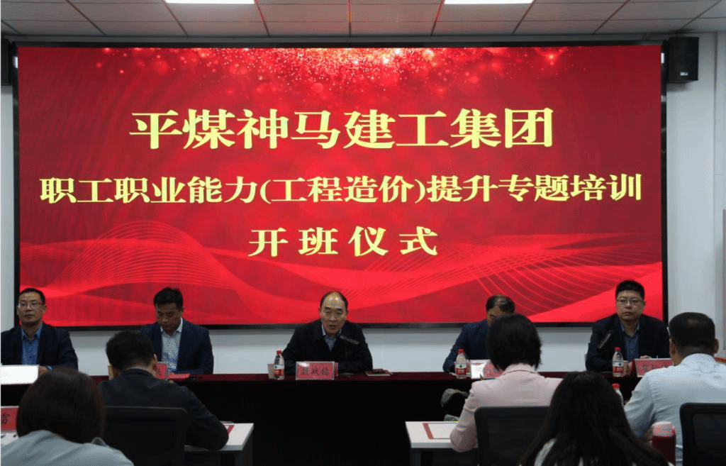 5月5日上午,在tyc122cc太阳成集团管理公司A208教室,举办了平煤神马建工集团职工职业能力(工程造价)提升专题培训班开班仪式。平煤神马建工集团有限公司副总经理汪源、董勤良,tyc122cc太阳成集团经理殷战稳和相关负责人以及40余名培训班学员参加会议。会议由管理公司经理霍松涛主持。
