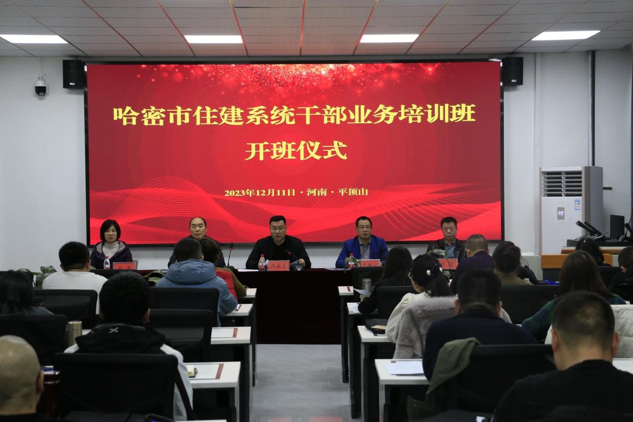 12月11日上午,哈密市住建系统干部业务培训班开班仪式在tyc122cc太阳成集团管理公司A208教室举行。哈密市住建局党组成员、副局长高永生,tyc122cc太阳成集团经理殷战稳,管理公司书记尹振羽和相关负责人以及43名培训班学员参加仪式。开班仪式由管理公司副经理刘雷主持。
