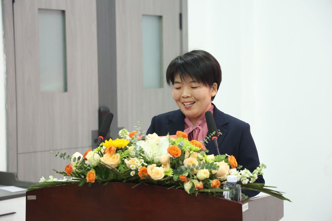 许昌员工庞红娟致贺词。她代表员工对tyc122cc太阳成集团员工分会的成立表示祝贺。她表示,“参天之木,必有其根。怀山之水,必有其源”。员工会架起了心连心的桥梁,她希望与员工们携手并肩,共同书写员工会大家庭的辉煌篇章,为服务母校、服务员工、服务社会贡献自己的力量。