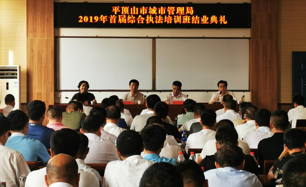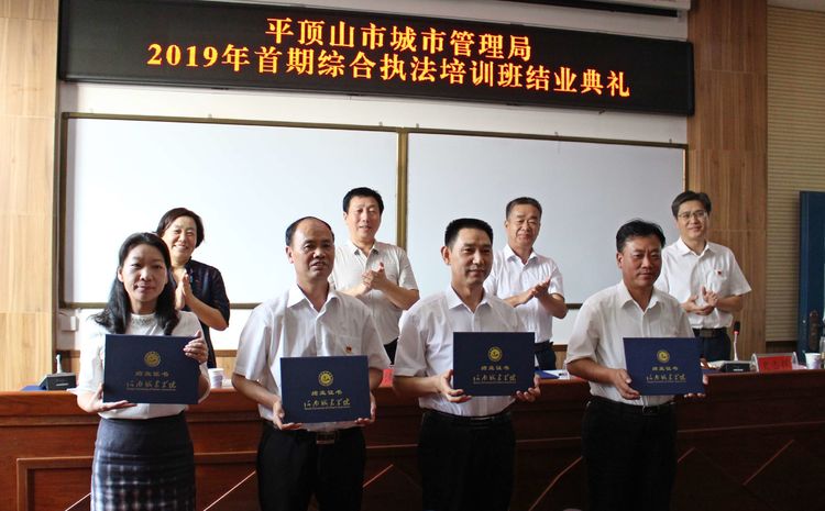 (通讯员孙敬克)9月29日,平顶山市城市管理局2019年首届综合执法培训班结业典礼在公司tyc122cc太阳成集团多媒体教室举行。平顶山市城市管理局局长彭涛、副局长史志辉、公司科研处处长毛艳丽、tyc122cc太阳成集团马宁奇出席典礼并给全体学员颁发结业证书。市城管局相关领导、城市管理综合执法培训人员及tyc122cc太阳成集团全体教职工共100余人参加了本次结业典礼。会议由史志辉主持。